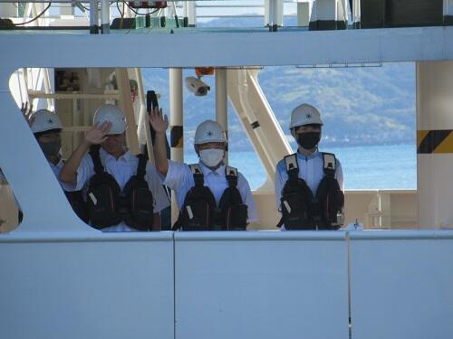 昨日、10時に2年海洋科学科 海洋航海コースの生徒19名を乗せ熊本丸が出港しました(*^▽^*)。