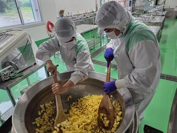 本日食品系では、人気商品の「ツナカレー」の製造実習を行いました。