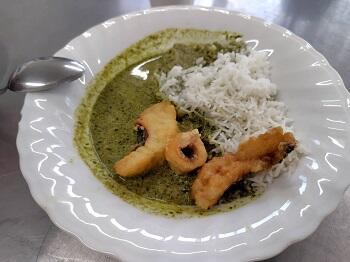 共に試作したグリーンカレーは、アサリやかつお節のダシがよく効いておりみんな口をそろえて「美味しい!」と言っていました!
