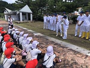 5月中旬から「総合実習」の授業で孵化させたマダイ約200尾、6月中旬から「総合実習」の授業で中間育成した稚エビ約5000尾を放流しました。放流の前には、本校生徒が小学生にマダイ・クルマエビの種苗の方法や放流の仕方を説明しました。
