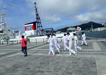 出港後、長崎港に向かう際にはうねりがあったため船酔いしてしまった生徒がいたようですが、入港前に回復したようです。