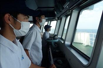 16日(水)には、海況も穏やかで海洋観測にもチャレンジしたようです。また、生徒達は航海当直の取り組みにも余裕が出てきたようで、時々近くを航行する貨物船などの針路を双眼鏡で確認し、レーダーと照らし合わせるなどしている様です。