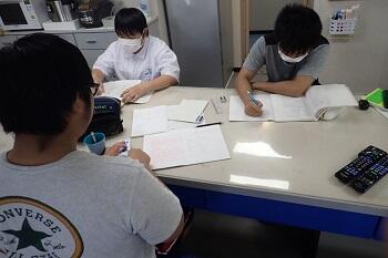 停泊中は、海技士試験に向けて問題集を使って海図で船位の求め方などの学習に取り組みました。
