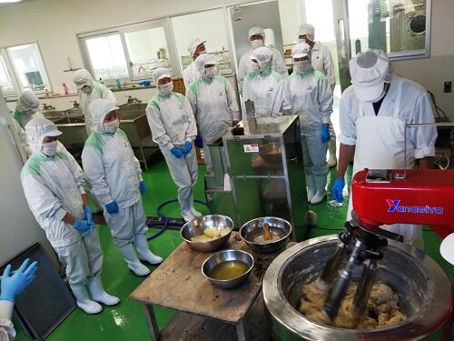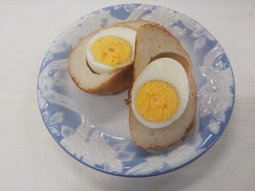 本日マリン校舎の食品系では、ゆで卵をすり身で包んだ岩たまごを製造しました(*^▽^*)。