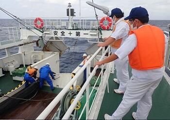 16日(水)には、海況も穏やかで海洋観測にもチャレンジしたようです。また、生徒達は航海当直の取り組みにも余裕が出てきたようで、時々近くを航行する貨物船などの針路を双眼鏡で確認し、レーダーと照らし合わせるなどしている様です。
