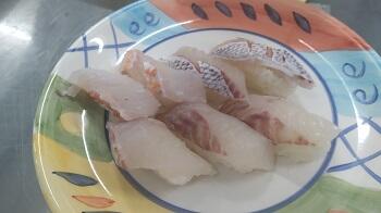 また、18日(金)には調査で獲れたマハタが刺身で出てきました。マハタの刺身は食べたことがない生徒が多く、おいしさに驚きながら完食してしまった様です。