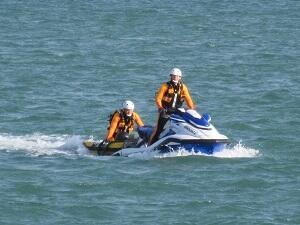初めての取り組みとなる今回の訓練には、2年生海洋航海コースの生徒が参加しました。船舶火災想定訓練では、生徒・乗組員が119番通報及び船舶用消火ホースなどを使い初期消火を行いました。その後、苓北分署の消防車による放水、特別救助隊による水上バイクでの救出など、より実践的な訓練となりました。