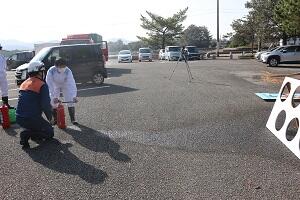 船舶火災想定訓練の後には、煙の怖さを体験する煙体験や消火器の使い方、救急車の見学などの消防体験も行われました。この訓練の様子は、『火災予防啓発』として保育園児や地元住民にも見学していただきました。