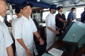 海況はややうねりがあるため、生徒は数名船酔いしている状況です。