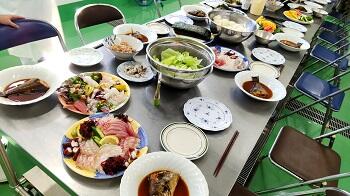 生徒達は、サザエや大きなマダイを初めてさばいて刺身にしたり、魚のあら汁や煮つけの調理のポイントなどを聞いてお魚調理について知識を深めて、最後には出来上がった料理をおいしく食べて大満足のようでした。