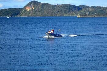本日の午後3時に新長崎漁港の沖に向けて航行予定です。