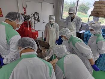 新年度1回目の実習は、人気No.1の製品である「てんぷら(さつまあげ)」の製造を行いました!