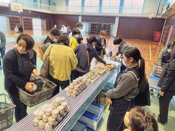 本日の育友会総会終了後、缶詰やてんぷらの実習製品を行いました。