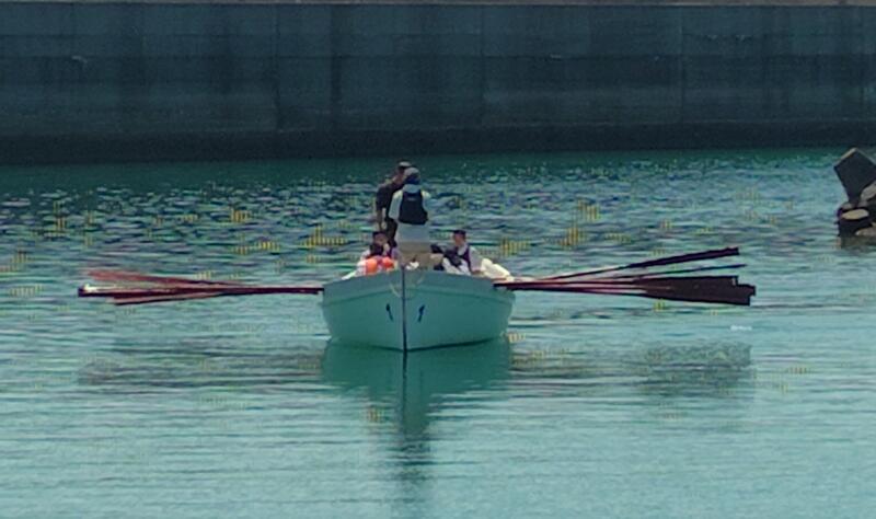 カッターとは、大型の船に搭載される救命艇のことをいい、本校では授業のほかに、部活動でもカッターを漕いでいます。カッターを漕いだ海洋航海コースの生徒達は苦労しながらも一生懸命漕いでいました。
