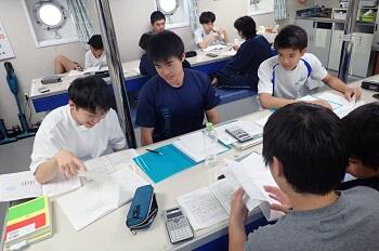 またこの4日間の中には、(株)エムエスケイの第二十一松丸の見学も行いました。ブリッジだけではなく機関室など案内してもらい、普段の仕事の内容など説明していただき生徒達は興味津々でした。