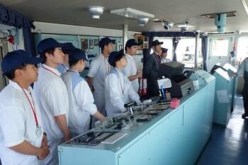 またこの4日間の中には、(株)エムエスケイの第二十一松丸の見学も行いました。ブリッジだけではなく機関室など案内してもらい、普段の仕事の内容など説明していただき生徒達は興味津々でした。