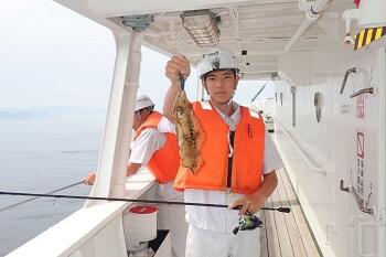 また、この3日間の間には救命艇の降下、操縦訓練を行ったほか、釣獲実習で釣れたアジなどをさばく練習なども行いました!!