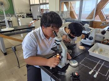 食品系の2年生は、「食品管理」の授業で微生物の観察を行いました。