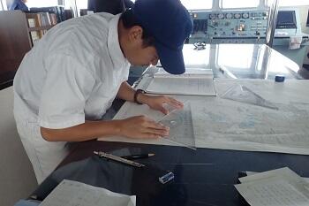 当直を行う際には、短時間で日誌や海図の記入、機器類の操作や設定の変更などをすることが多く少し迷ってしまうことがあります。そこは、先生方や乗組員の方に教えて頂きながら作業を進めていっています。
