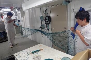 また、長崎港に入港する際には生徒が主となって行っていますが、毎回違う部署を経験するため少し動きがぎこちない場面が見られましたが乗組員の方々に話を伺いながら作業をこなしていました。