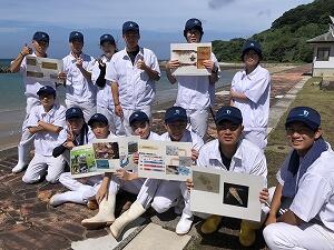 5月中旬から「総合実習」の授業で孵化させたマダイ約200尾、6月中旬から「総合実習」の授業で中間育成した稚エビ約5000尾を放流しました。放流の前には、本校生徒が小学生にマダイ・クルマエビの種苗の方法や放流の仕方を説明しました。