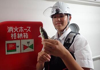 午後は、出港後に学習と操舵体験、投錨見学、漁具作成、釣り実習を行いました。学習内容がたくさんあって生徒達は大変な様子でしたが、船にも慣れて船内生活を楽しめたようです。