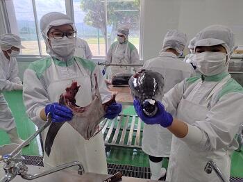2日間にわたってマグロの処理から缶詰にするまでの工程を行いました。