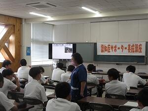 2年生が「認知症サポーター養成講座」を受講しました。苓北町の高齢者の現状、認知症についての基礎知識や望ましい声のかけ方などについて実践を通して教えていただきました。講座を終えた生徒たちは「認知症について詳しく知ることができた」「声かけが難しいと感じた。笑顔で声をかけたい。」と話していました。