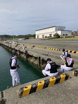 1年海洋科学科「水産海洋基礎」の授業では、学校近くの富岡西港で釣獲実習(釣り実習)を行いました。