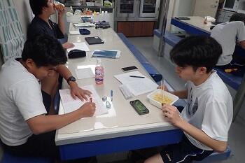教室や部室、グラウンドの空中落下菌を顕微鏡で観察しました。生徒達は「なんだこれ?」や「気持ち悪い」など様々な声を上げていました。
