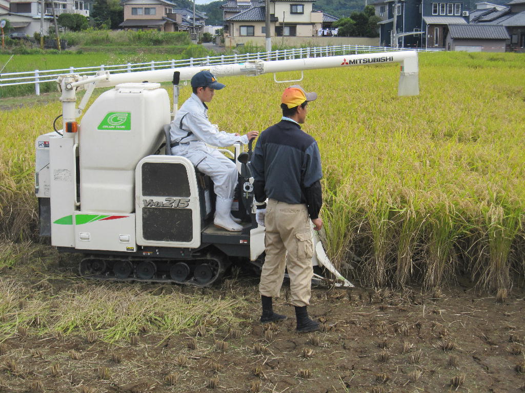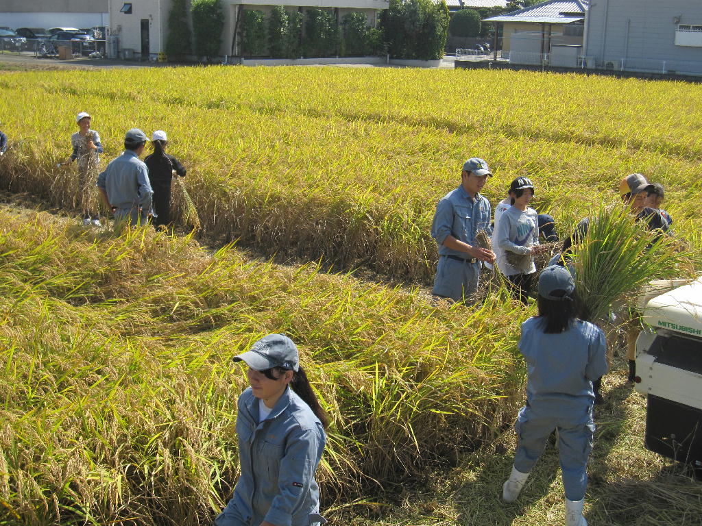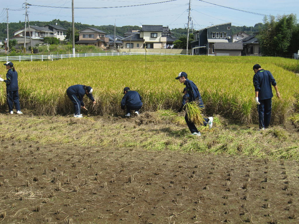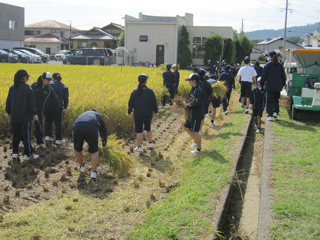 「稲刈りかま」を初めて使う生徒たちも沢山いましたが、生物生産科の職員の指導のもとケガも無く、生徒たちは秋の実りを体感しました。