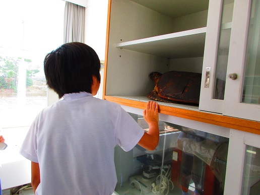亀は剥製(はくせい)でしたが、今年の夏、富岡海水浴場に産卵に来た時