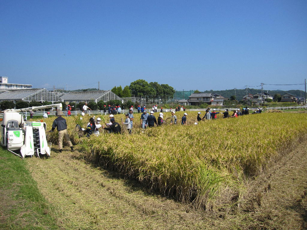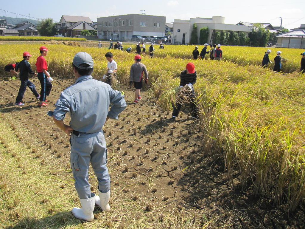 本渡北小学校のみなさん、今日はお疲れ様でした。田植えしたころの稲は小さかったと思います。それが約4ヶ月で私たちが毎日食べている「お米」になっていることで「植物の生長」のすごさを実感出来たと思います。