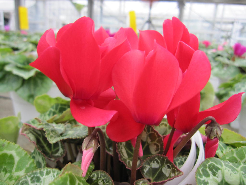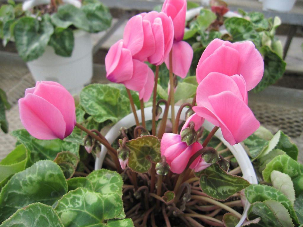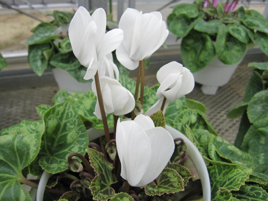 本校で栽培しているシクラメンは種を購入して育てています。ハイライトという品種で色は混合(色々な色の種が混ざっている)を栽培しています。