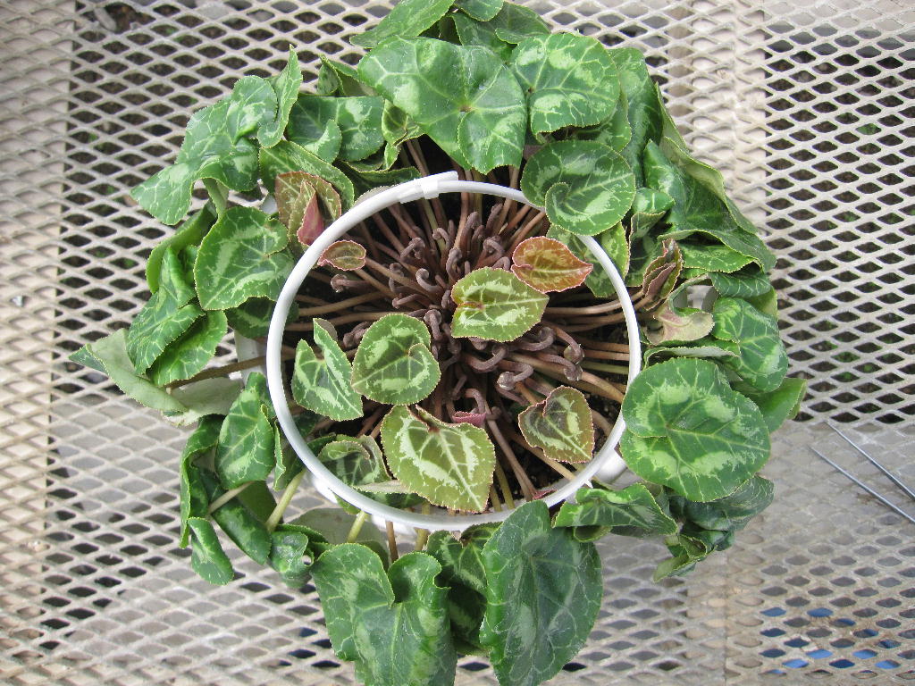 何回も何回も葉組みをすることで中心の球根から葉が10日~2週間でいっぱいになります。夜温も下がってきてシクラメンも人も快適な気温になってきました。