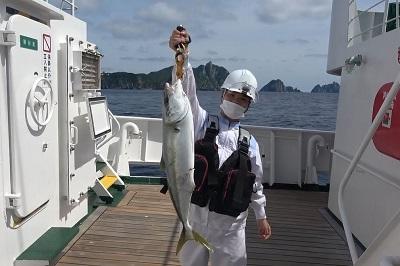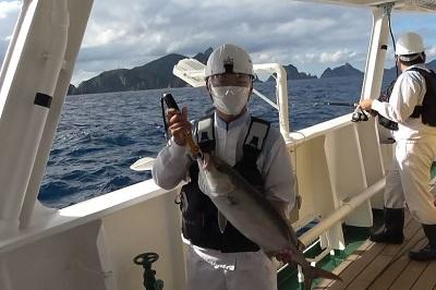 海況良好。昨日、女島にてジグング等の釣り実習を行い