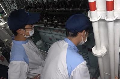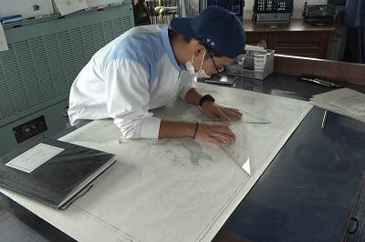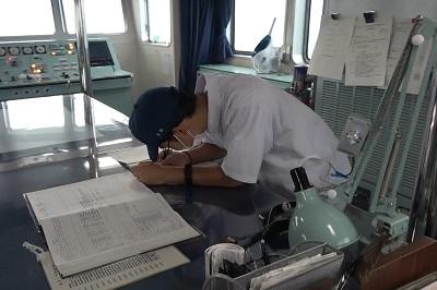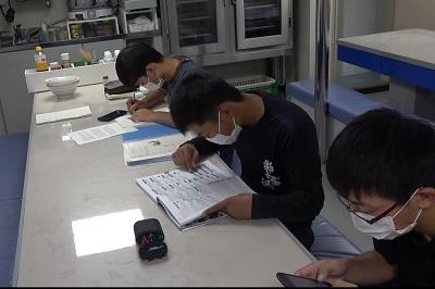 苓北町・坂瀬川沖錨泊中。海況良好。本日、9:00抜錨し鯵曽根向けとする。生徒その他皆元気。