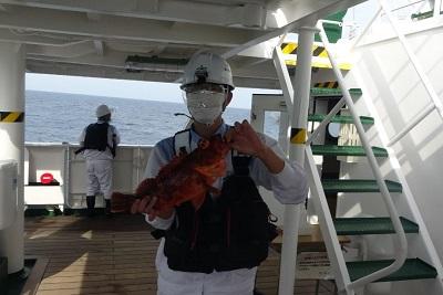 鯵曽根向けとした。夕方、鯵曽根にて釣り実習を行い漂泊。