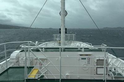 苓北町・坂瀬川沖錨泊中。本日、悪天候によりそのまま錨泊。