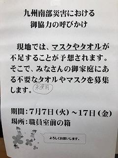 【両校舎】九州南部豪雨災害における御協力の呼びかけ