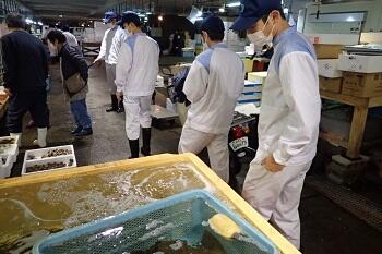 16日(土)には、午前5時30分から長崎県魚仲卸市場の見学を行いました。ブリやマグロなどの大型の魚があったり、天草産のマダイがあるなど水産物の流通を肌で感じることができました。