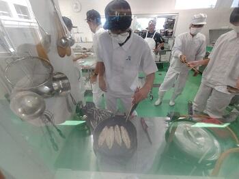生徒の中には初めて魚をさばく生徒もおり不慣れながらも頑張ってさばいていました。