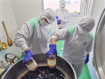 | 調味液にショウガエキスを入れます | しっかりと混ぜ合わせています! |