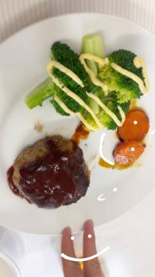 ハンバーグ・にんじんのグラッセ・コンソメスープ