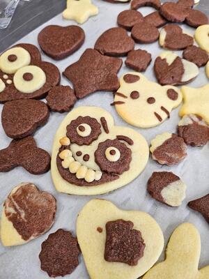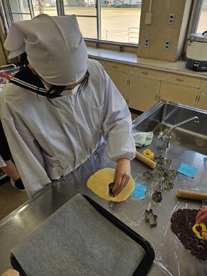 1年生活科学科で、ココアとプレーンの2種類のクッキーを作りました。