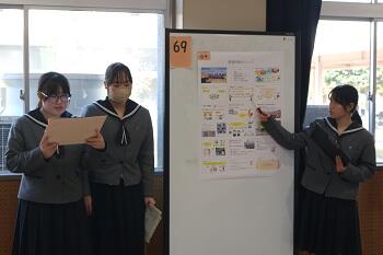 発表では、地域の魅力発信につながるイベントの企画や、未利用魚を活用した商品開発など、多様な視点から課題を捉えた研究が紹介されました。どの発表も、地域の課題や資源に着目しながら、自分たちなりの考えを深めた内容となっていました。