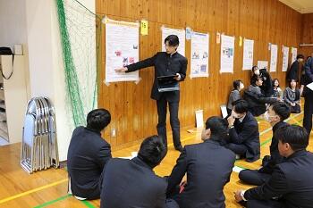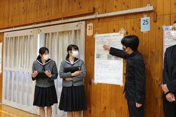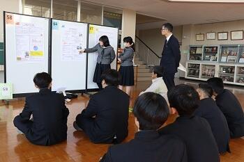 本渡校舎において、1・2年生による探究成果発表会が行われました。生徒たちは、1年間取り組んできた研究内容をポスターにまとめ、それぞれ発表を行いました。