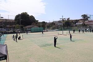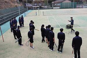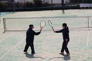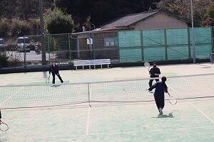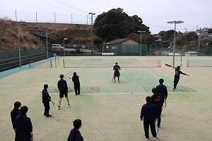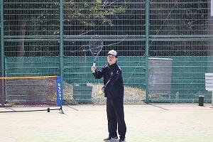 | テニス:午前は基礎技術のレッスン、午後は試合を行いました。初心者も楽しみました。 | |