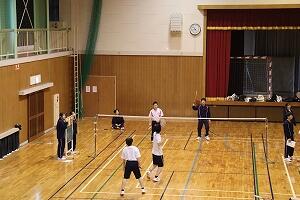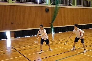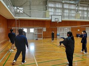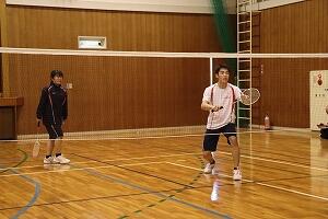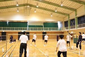 | バドミントン:ダブルスで試合を行いました。経験者のプレーに圧倒される場面も。 | |