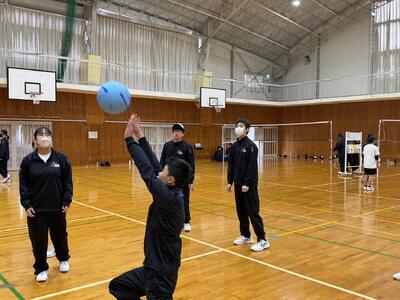 | ソフトバレー:1番参加者が多かった種目。チームで息を合わせてボールをつなぎました。 | |